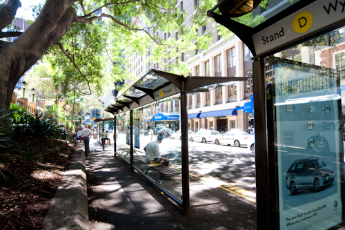 久々にシドニーの街中へ朝出かけていって。。。いつものバス停で、バス待ちに一枚。。。
